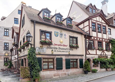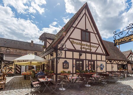Die Original Nürnberger Rostbratwürste müssen im einzigartigen Kanon serviert werden: 6,8,10 oder 12 Stück. Die gleiche Anzahl gibt es als „Saure Zipfel“. Sonst gibt es noch "Drei im Weckla", "Zwei rohe als G’häck-Weckla oder G’häck-Brot" oder "Eine auf der Gabel".