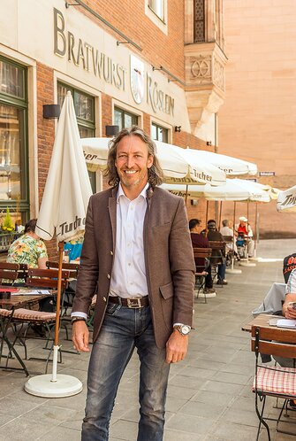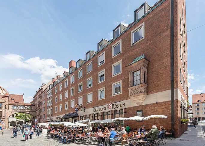 Das Bratwurst-Röslein steht seit 1432 im Herzen der Nürnberger Altstadt nicht weit vom Hauptmarkt entfernt. Einst die Bierschenkbehausung „Waizenstüblein“, dann zur alten Nürnberger Rostbratküche „Zu den drei Rosen“ zum heutigen „Bratwurst-Röslein“.