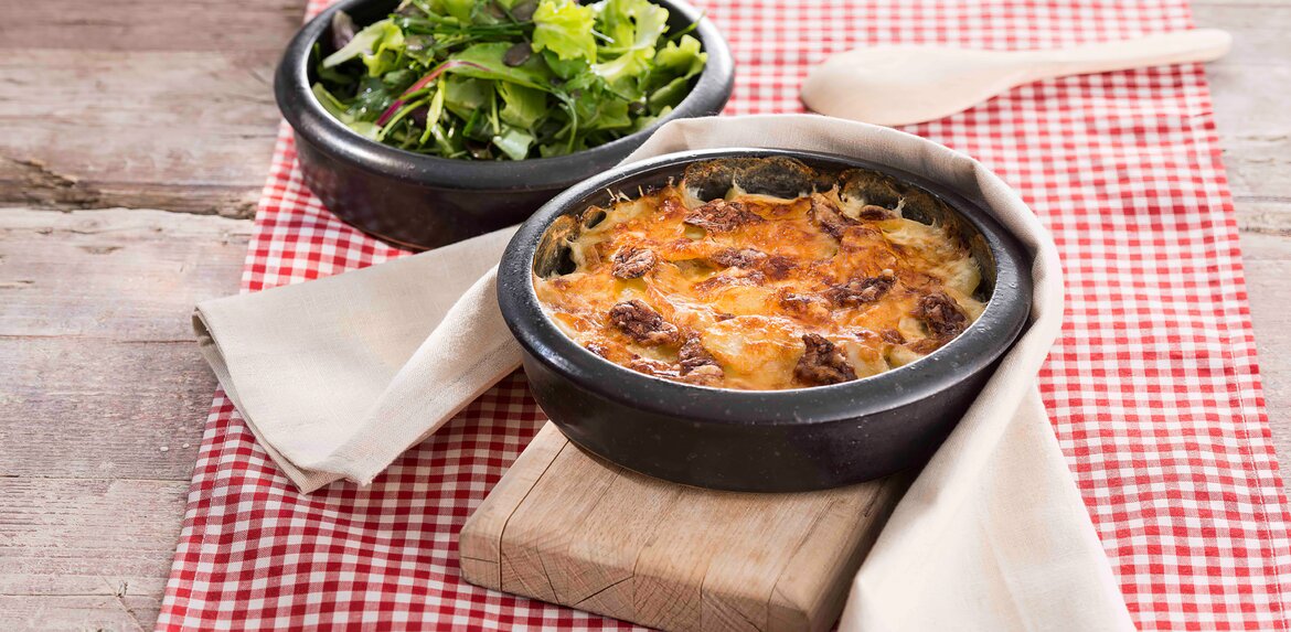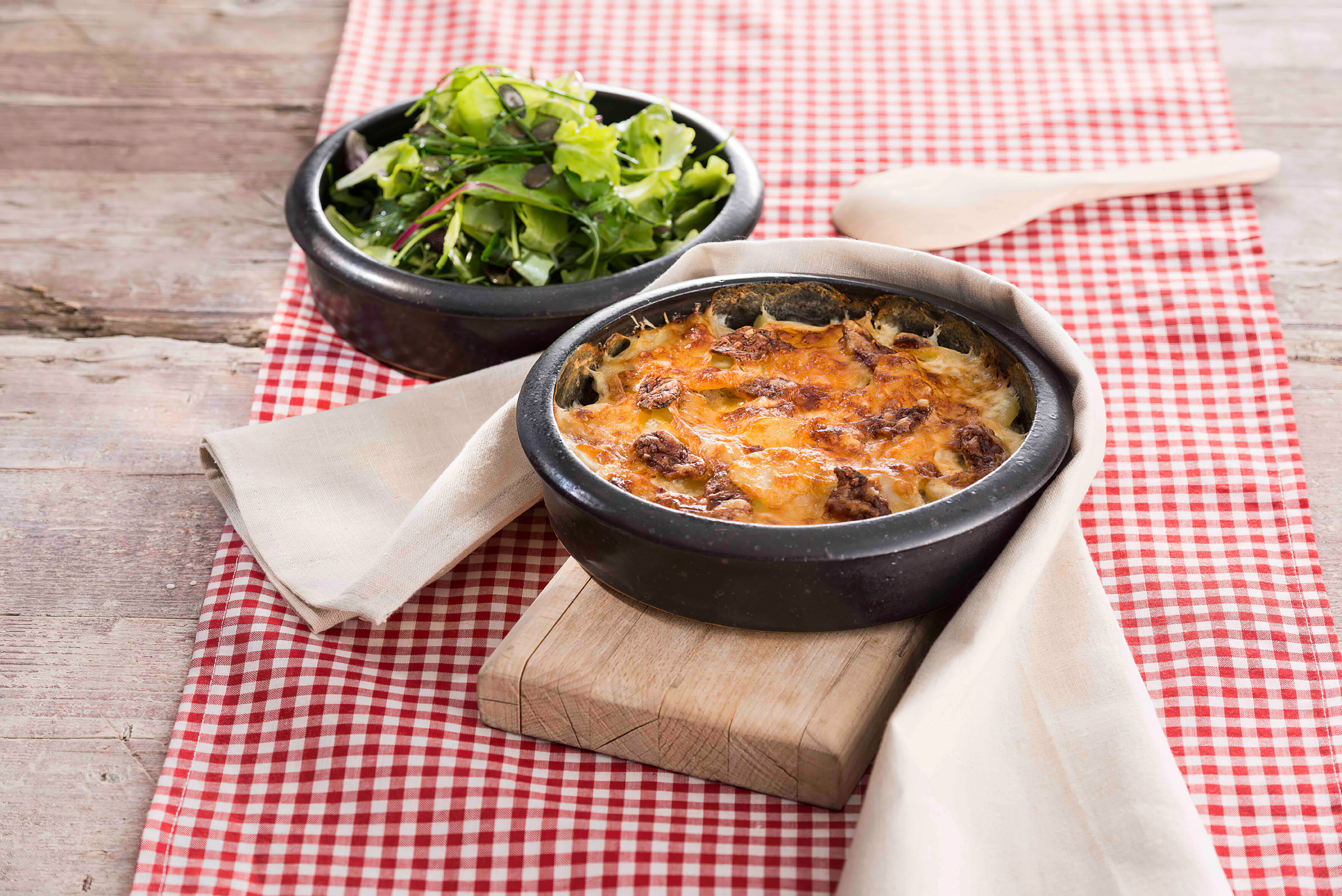 - Zum Schluss mit dem Hartkäse bestreuen und bei 180°C ca. 40 Minuten backen, bis die Kartoffeln gar sind und die Oberfläche goldbraun ist.