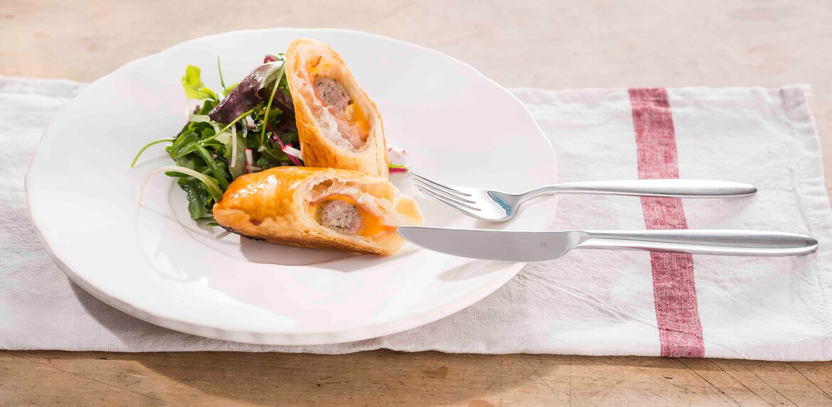 - Die Bratwurstpakete mit Eigelb bestreichen und 20-25 Minuten bei 200 Grad bei Ober-Unterhitze backen.