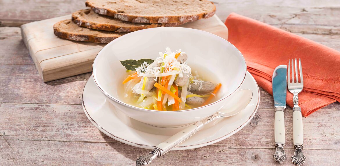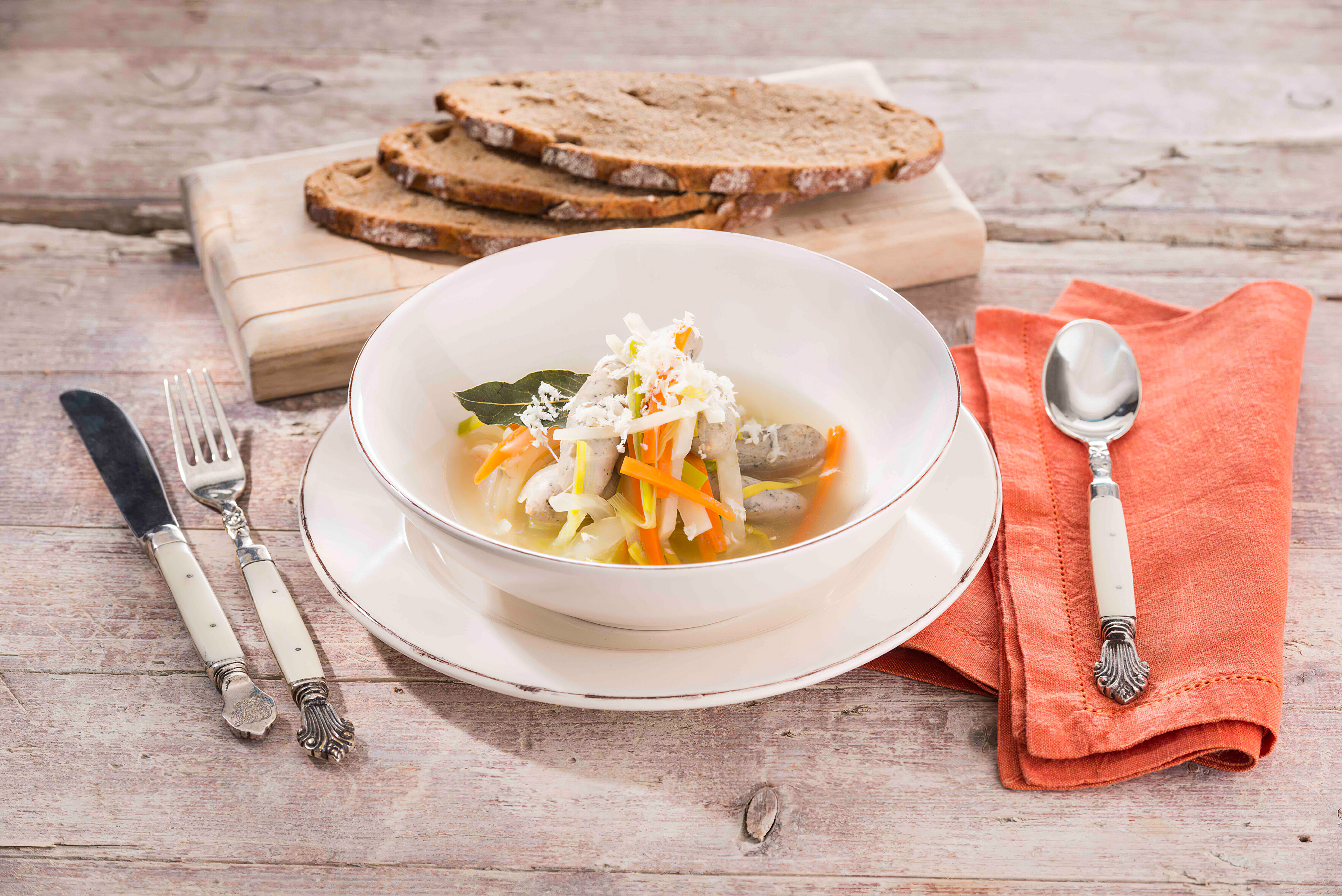 - Das Gemüse in den Sud geben und 5 Minuten kochen. Danach die Nürnberger Rostbratwürste einlegen und weitere 10 Minuten ziehen lassen.